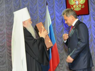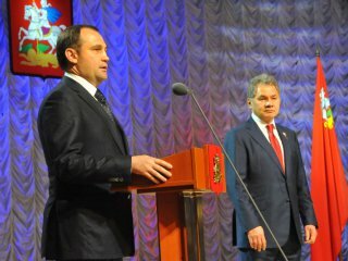 После того как Игорь Брынцалов озвучил решение Мособлдумы, он пригласил на сцену Сергея Шойгу для принятия присяги.